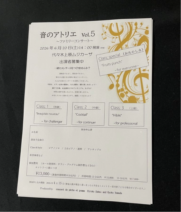 ファミリーコンサートは大人も子供も参加できます。発表会とはひと味違うコンサート形式で、チラシ、プログラムも作ります!